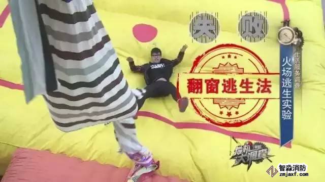 实验证明:翻窗跳楼的方法有局限性,首先被困人员所处的位置不能太高,直接跳肯定不行,如果用绳子或者床单,需要有正确的打结方法。同时要提醒大家,6楼以上,消防气垫的作用就不明显了。