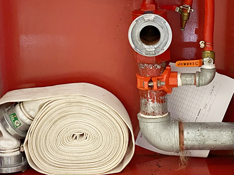 3)检查消火栓箱内水带、水枪、接扣、自救卷盘、小锤,应完整无缺失。