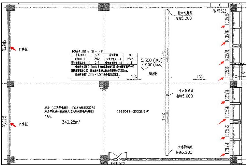 案例1:某项目建筑面积大于50m²,无可开启外窗且经常有人员停留的房间未设置排烟设施,不满足规范要求。如下图所示。