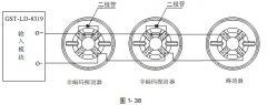 GST-LD-8319输入模块与非编码探测器串联连接时,探测器的底座上应接二极管 1N5819,且输出回路终端必须接GST-LD-8320或GST-LD-8320A终端器,终端器可当探测器底座使用,即在此终端器上可安装非编码探测器,其系统构成图如图1- 36: